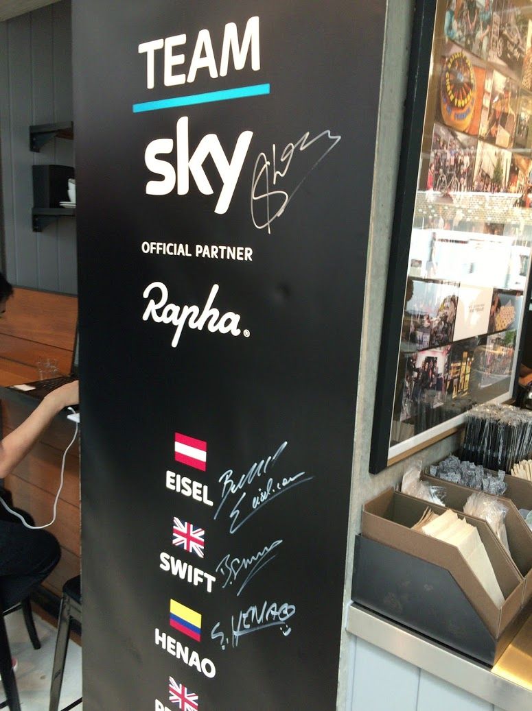 チームSKYのサインが飾られており、Bianchiカフェともまた違う雰囲気。