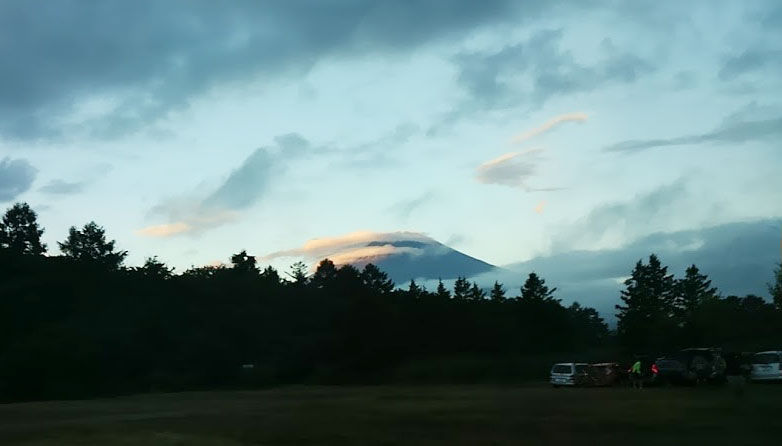 やんで、富士山のシルエットが見えます。