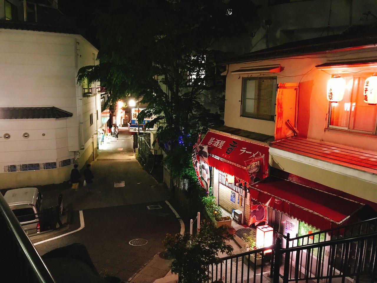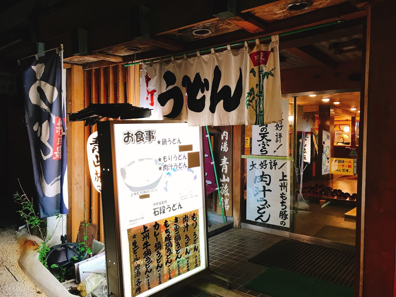 夕食は名物の「石段うどん」を食べる為に夜の温泉街に繰り出します。