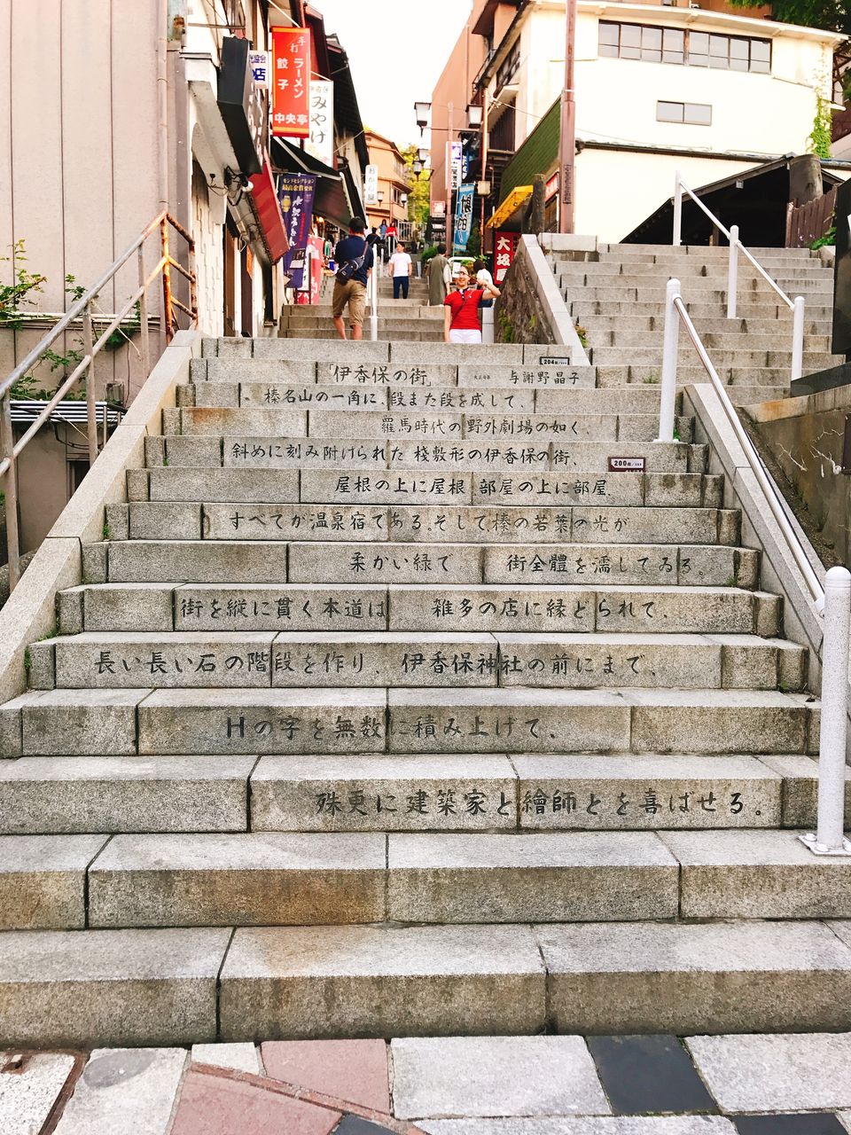 草津温泉と並び1300年以上の歴史を持つ温泉で万葉集にもその名が記されているそうです。シンボルの365ある石段があるだけあって、この一帯が凄まじい激坂です。ここで生活すると豪脚のサラブレッドが誕生しそう…。