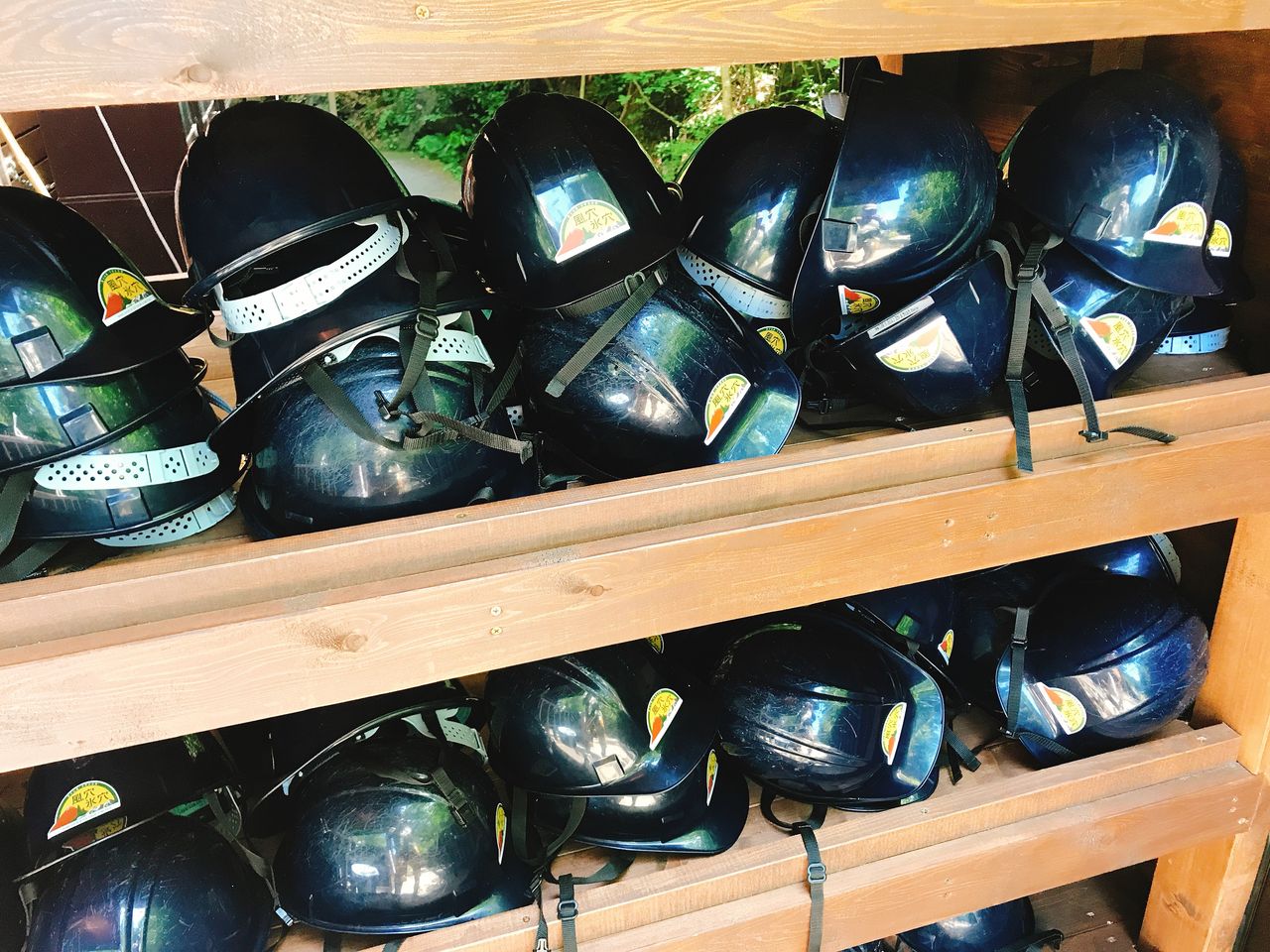 氷穴内はとても天井が低いので、ヘルメットの装備が義務付けられていますが
