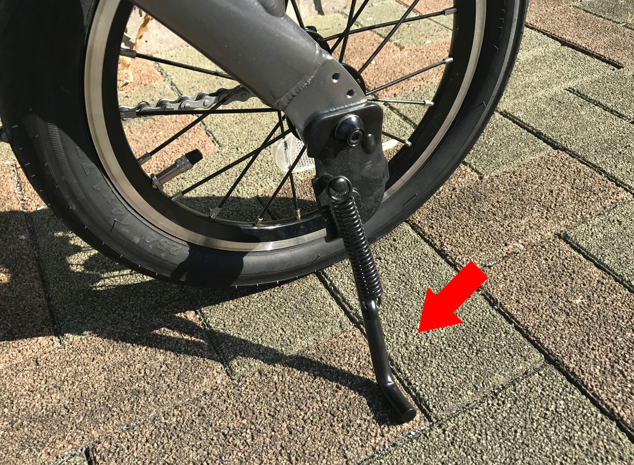 標準装備のスタンドです。軽量化のために外す事も考えましたが、これが実に便利。