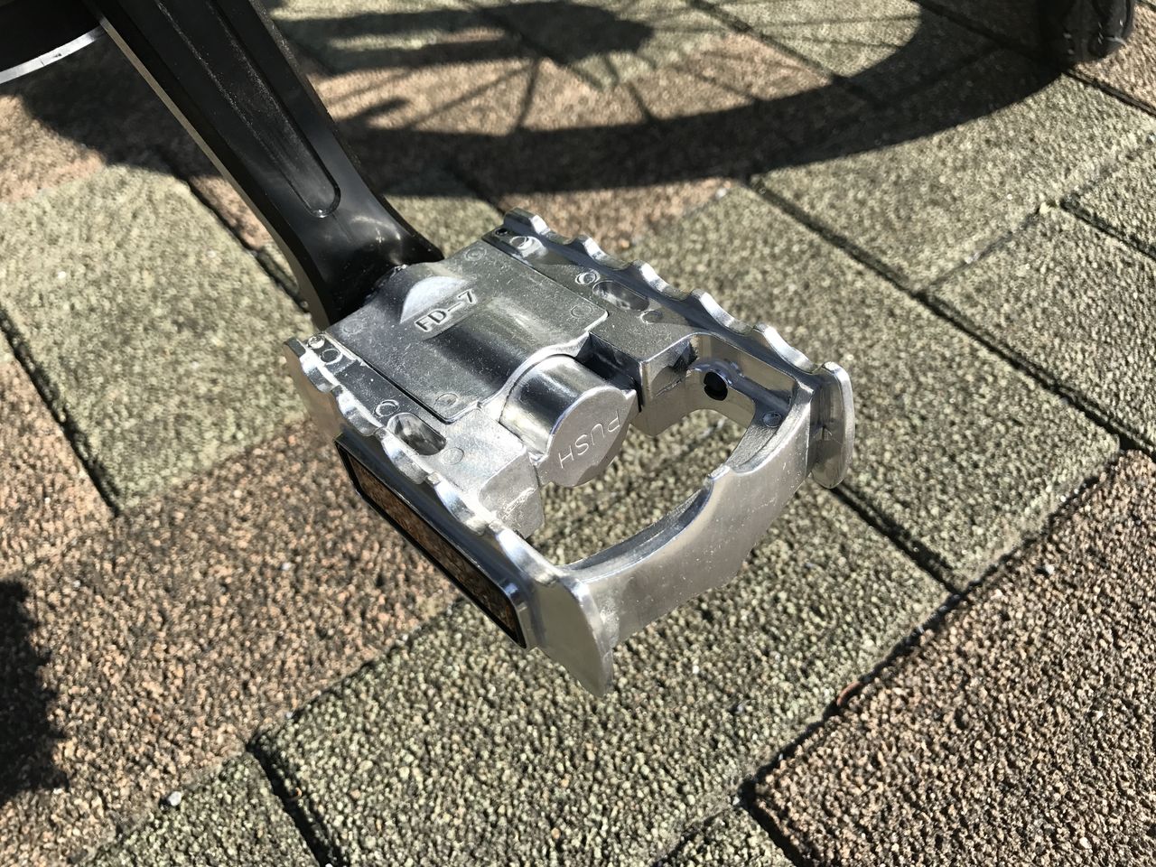 三ヶ島ペダルFD-7のカラーは夫者と違いシルバーです。