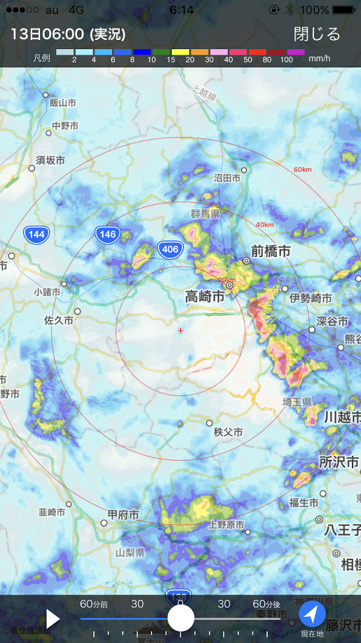 雨。圧倒的、雨。道中、警報が出てるんですけど…。