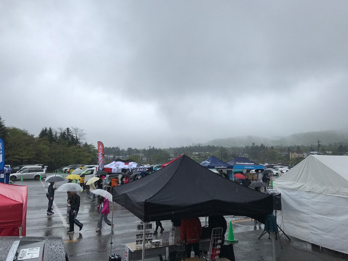 少しでも雨がマシになることを祈りながら車で会場入り。