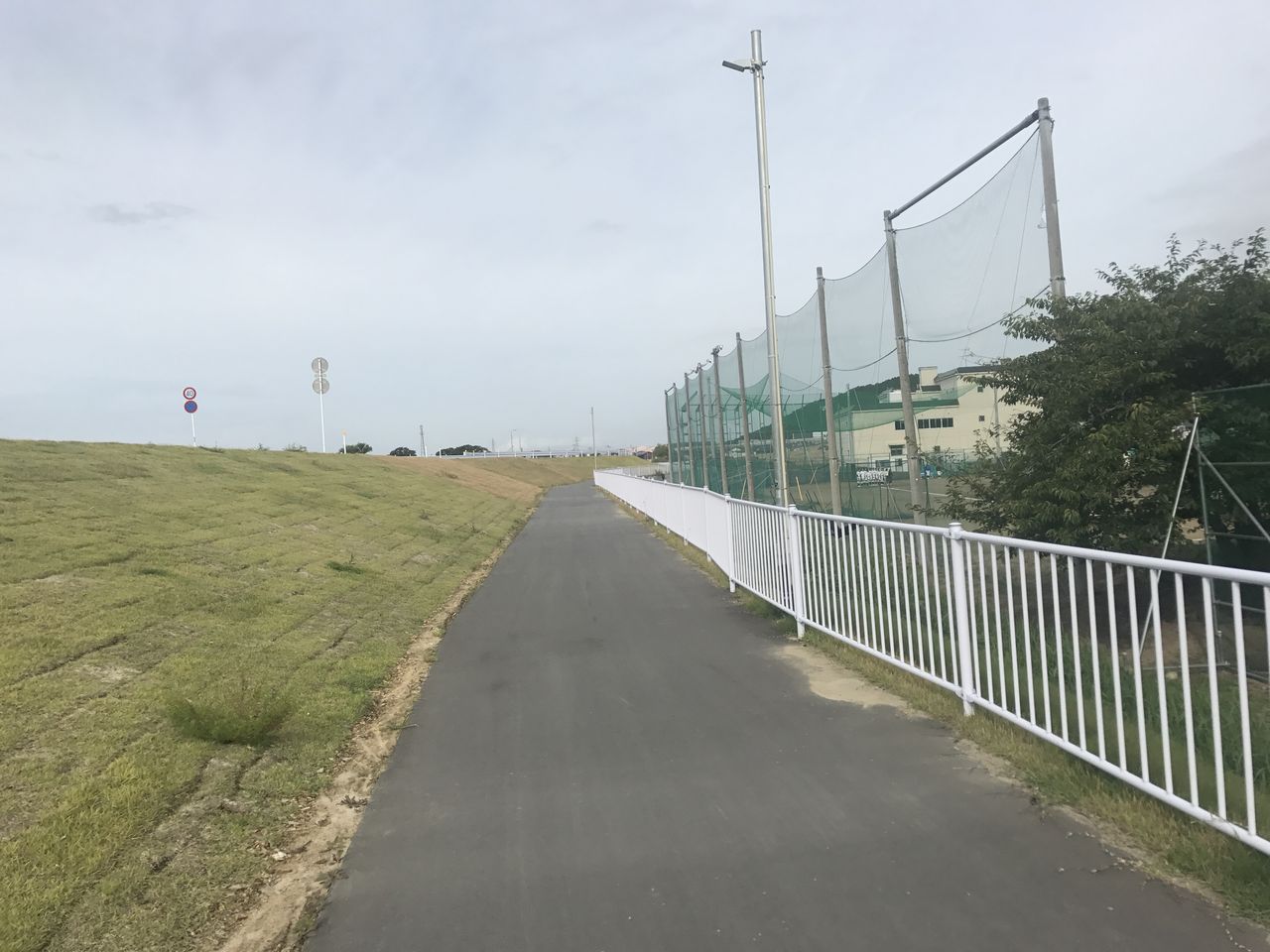 街中を進み、旧北上川沿いのサイクリングロードが見えたら