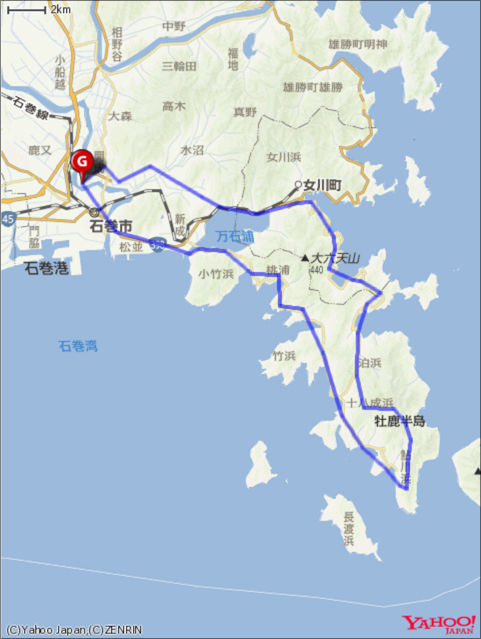 我々が行くのは「奥松島グループライド&ハイキング(70km/獲得標高230m&約20分の登山)」