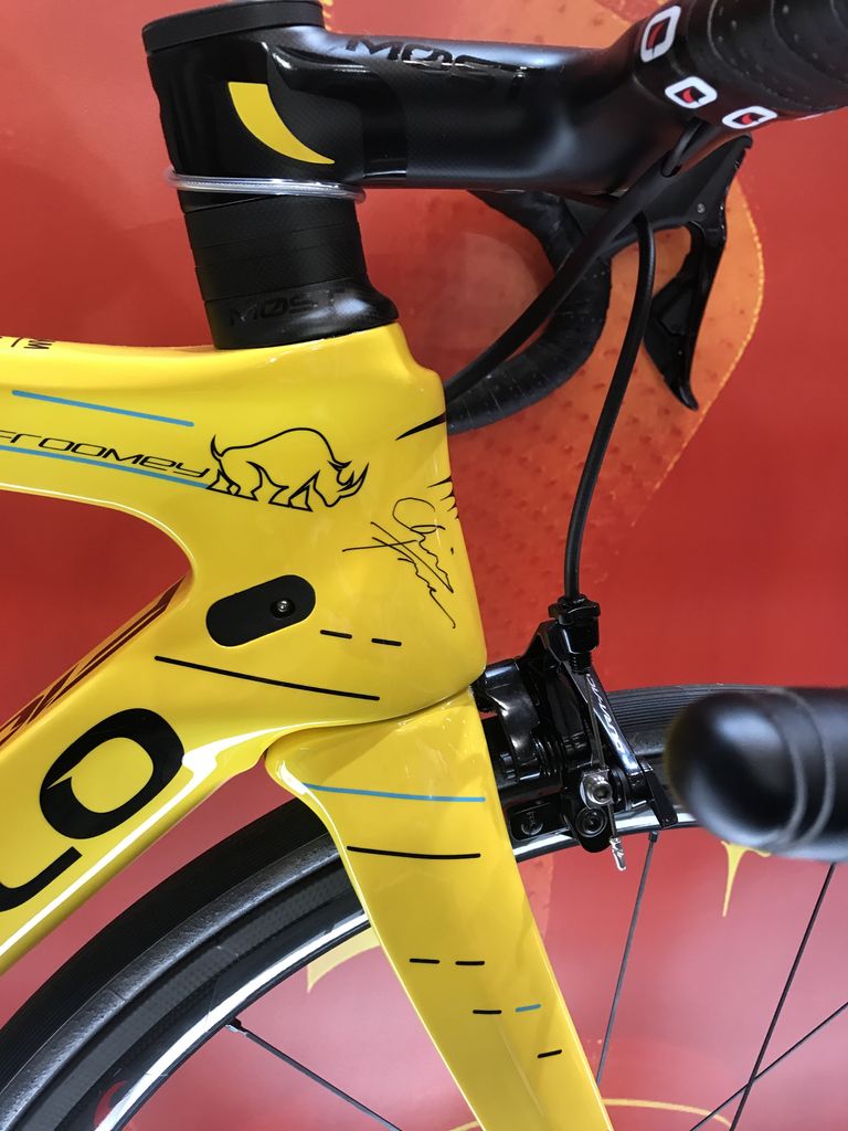 クリス・フルーム選手です!! 自転車に自身のサインを入れている所でした。