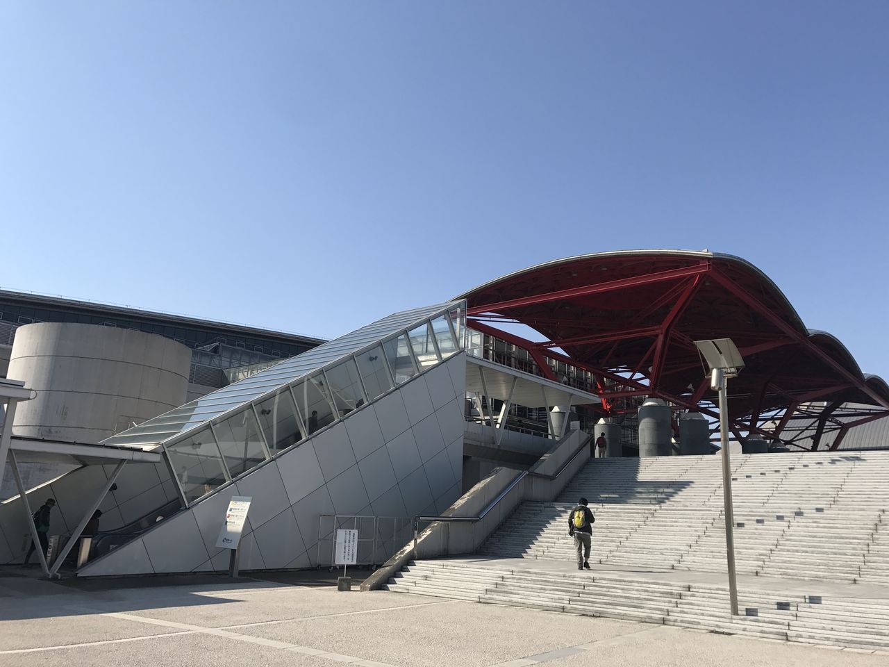 おや、幕張メッセの中に黄色い線が…。