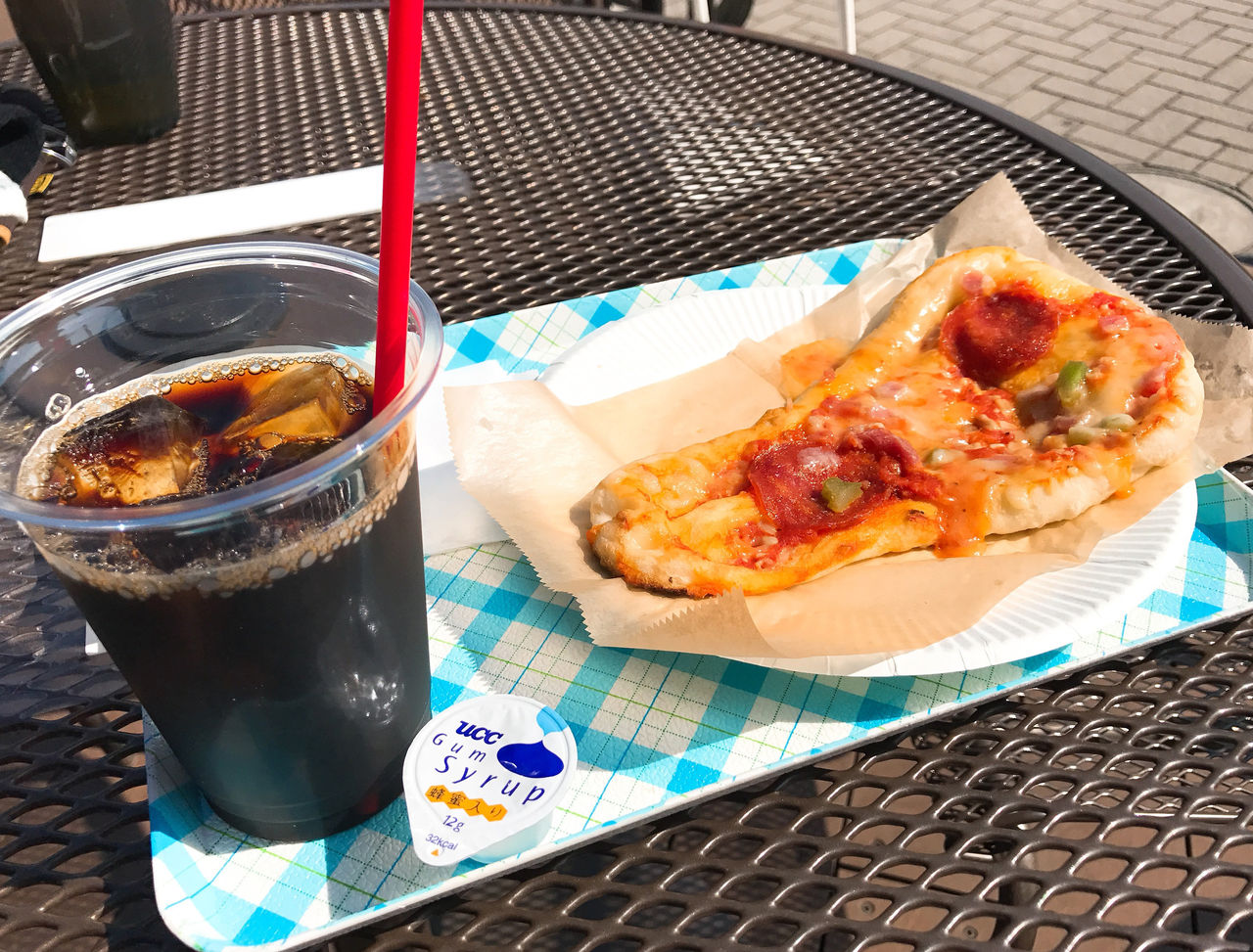 ちょっとした小丘にあるので旧中川を眺めながらナンピザを頬張る。こいつは大正解。