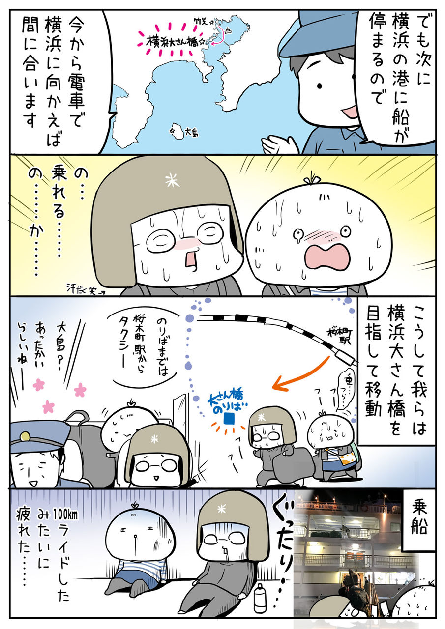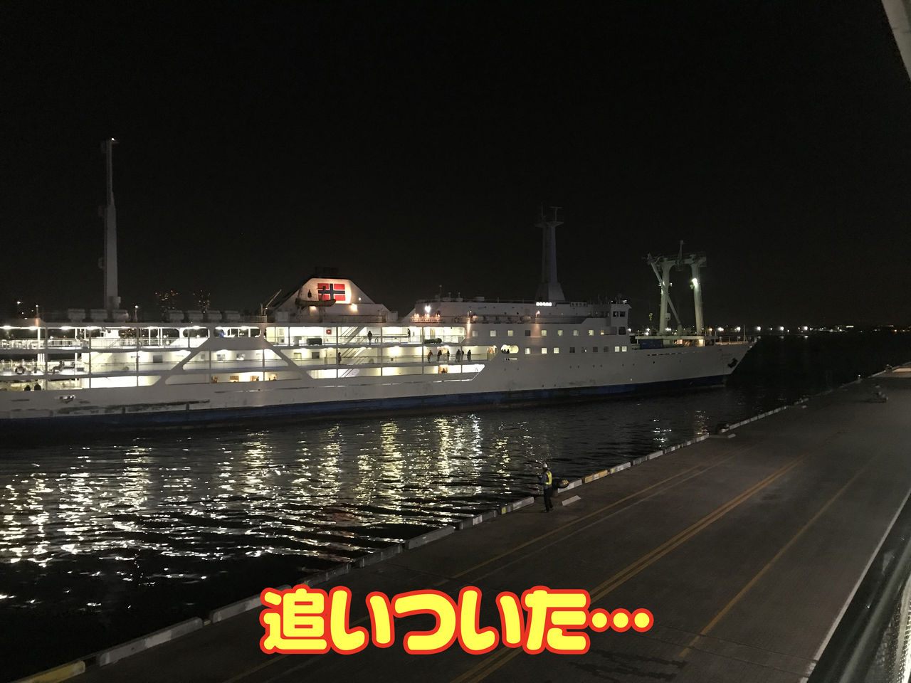 横浜大さん橋に23:30まで停泊するので、それまでに電車やタクシーなら間に合うとのこと!!!