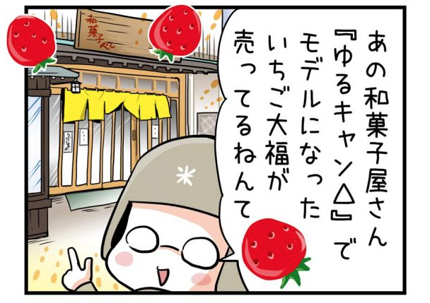 作中では「苺のきらめき」という和菓子ですがこちら実物は「いちごの雫」という名前です。🍓