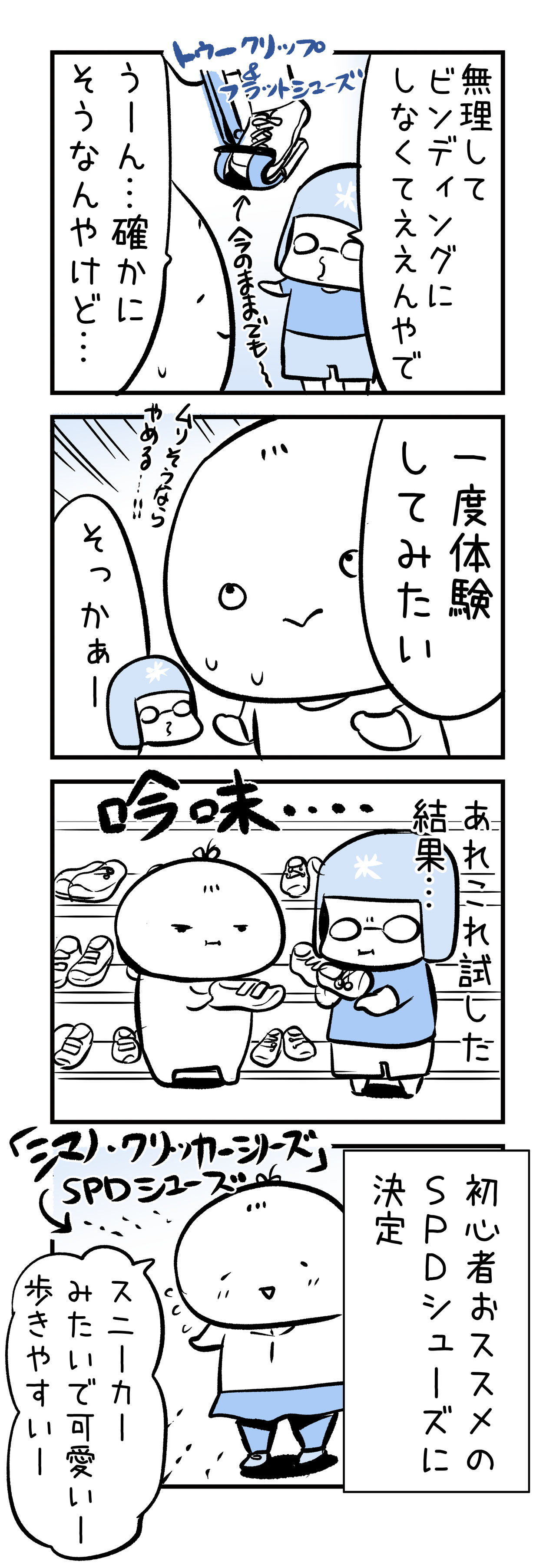 ペダルをゲットしたら次はSPDシューズ選び!理想のシューズを求めて自転車用品店に。