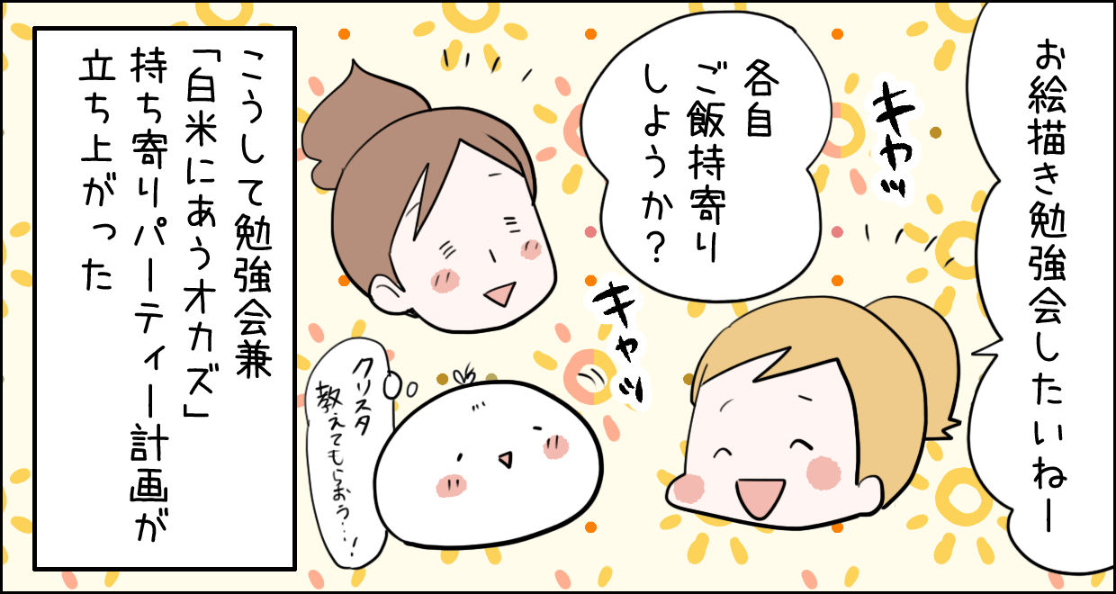 先日、くららさん(ブログ『くららんち。』)とフクミーさん(ブログ『天使な小悪魔たち』)と持ち寄りパーティ兼「お絵描き勉強会」をしました。