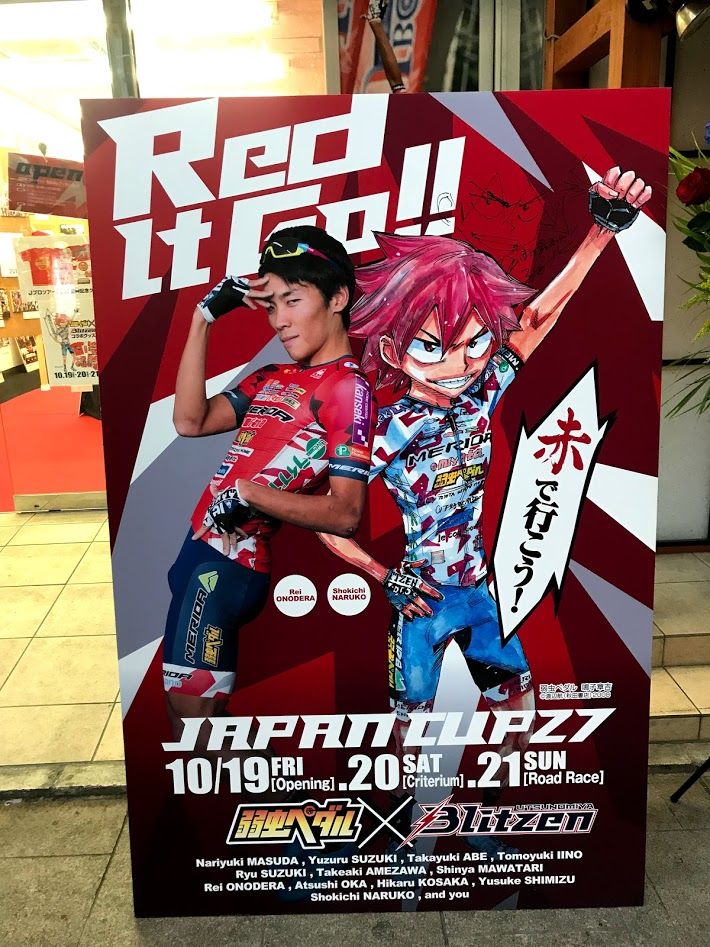 なんと、ジャパンカップに合わせてアニメのサイクルジャージが店内にディスプレイされているのです!なんて粋な計らい!