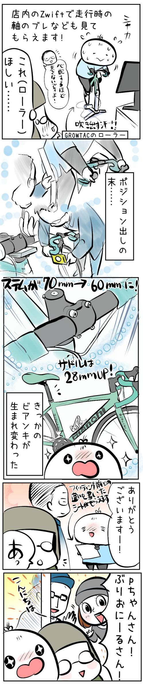 ➡ 【四コマ】フィッティングの効果!?女性ローディが浅草にある自転車屋SPIRITOさんでフィッティングをお願いしたら・・・