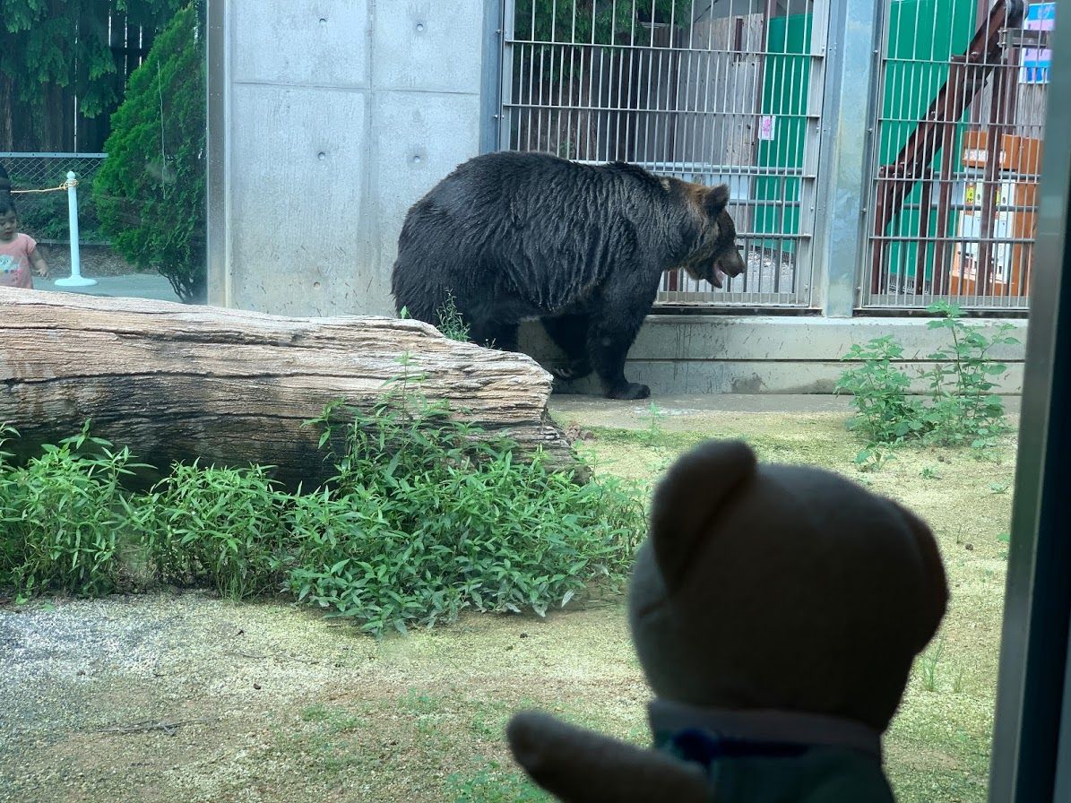 ヒグマのアヤメちゃんを見ているファファキタさん。