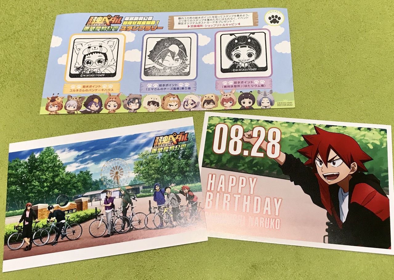 入場ゲートで「弱虫ペダル」チケットを買うと、スタンプラリーの用紙がもらえます。コンプリートするとオリジナルポストカードがもらえるのです。これは楽しみ✨