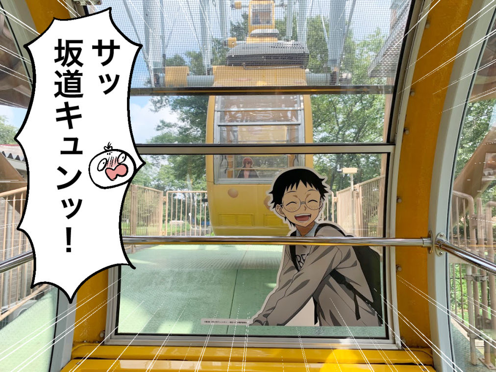 そう、弱ペダキャラといっしょに乗れる観覧車なのです!!むこうのゴンドラには新開さんが見えますね……!