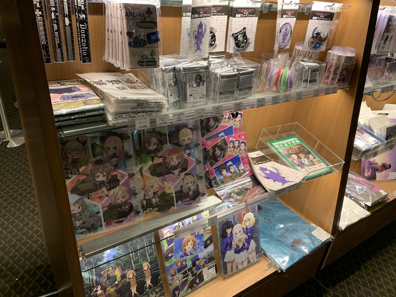ガルパンの4D体験後はお土産コーナーで新しいグッズに悩む我らでありました。