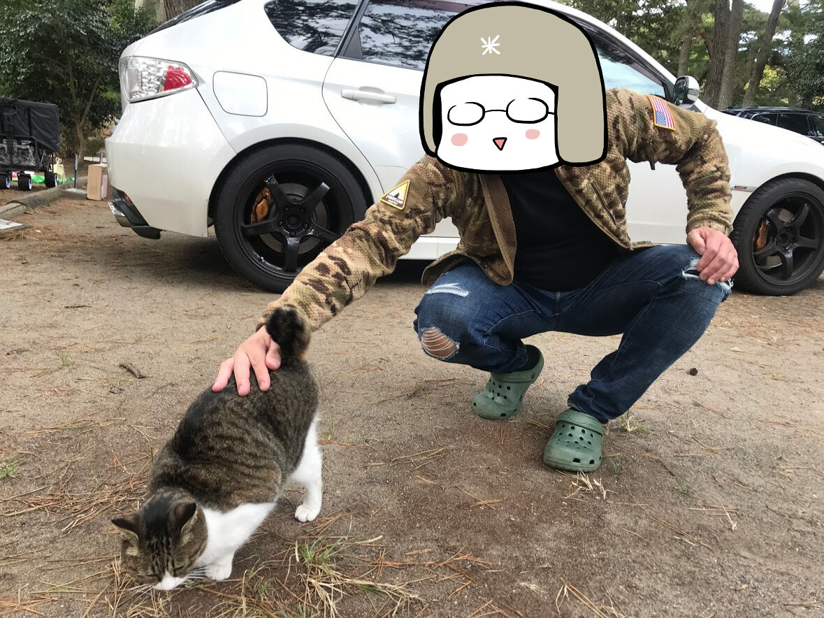 テントを設営しながら、キャンプ場のねこちゃんと戯れる癒しの時間。