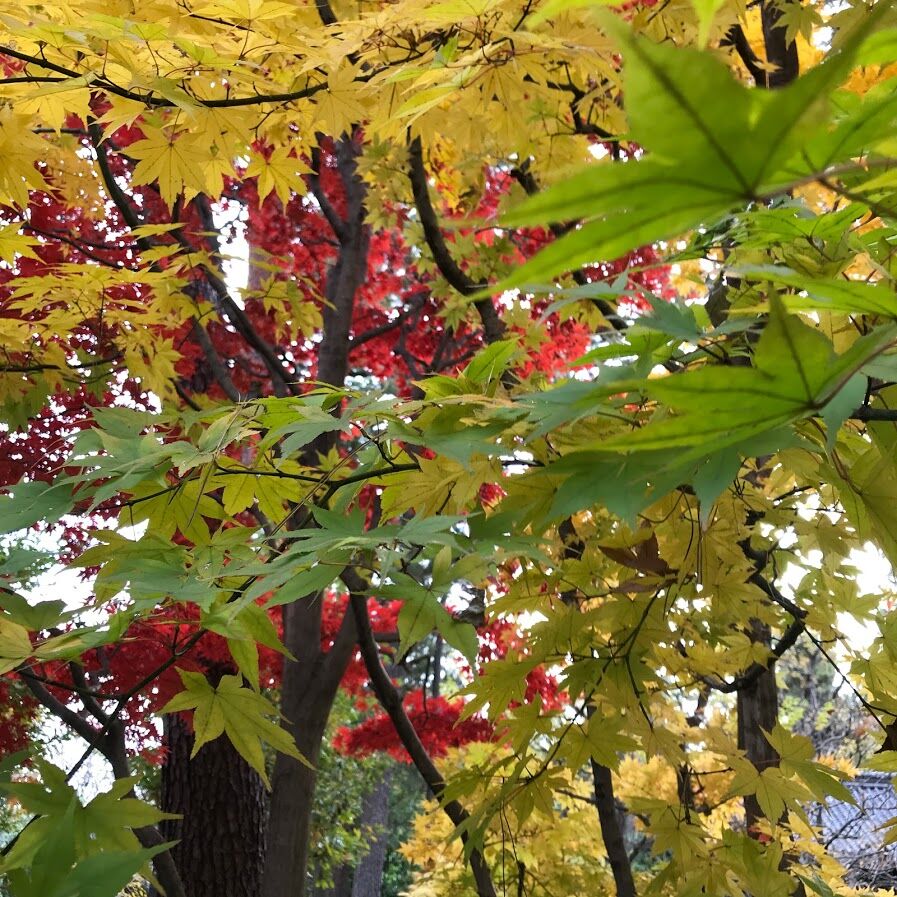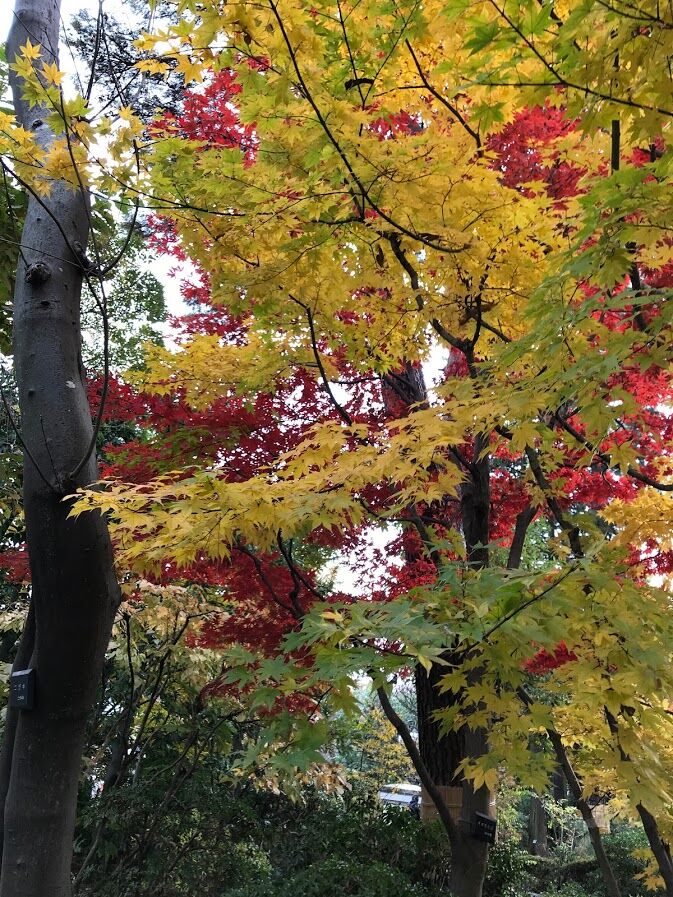 庭園の紅葉はグリーンから黄色、そして赤のグラデーションに色づいて見事な景観✨