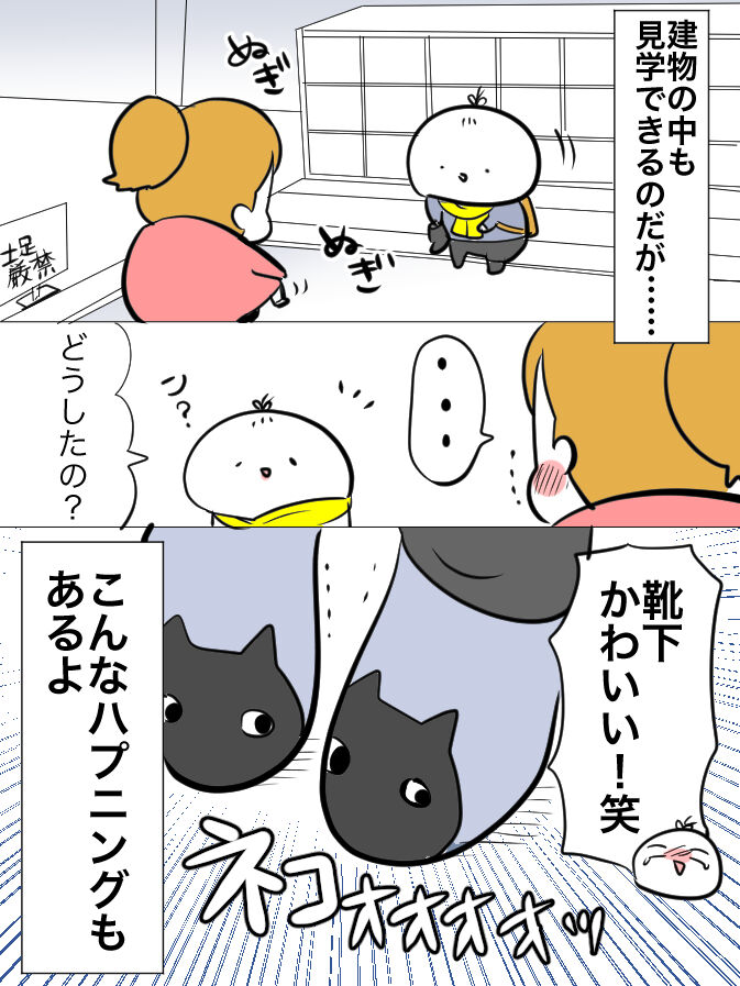 建物内を歩くので、ストッキングやタイツの方はフットカバーなど持参したほうが足が冷たくなくておすすめです。