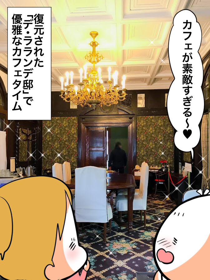 復元建造物「デ・ラランデ邸」の邸内及びテラスでお茶やお食事を楽しむことができます✨