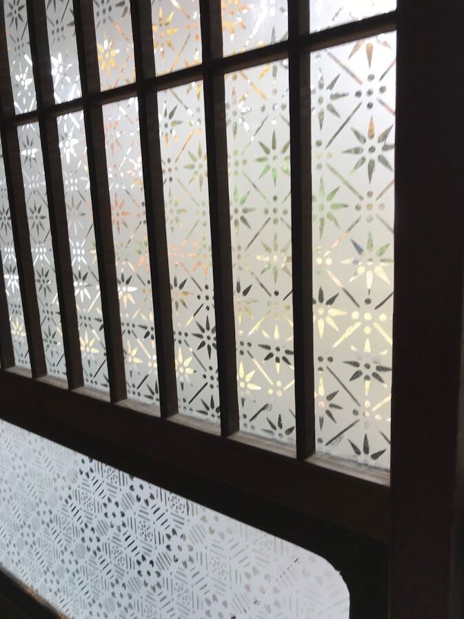 明治時代のガラスが使われているのですが、表面が静かに波打ったようになっていてこのガラスを通して見る風景がなんとも言えない情緒がありました。