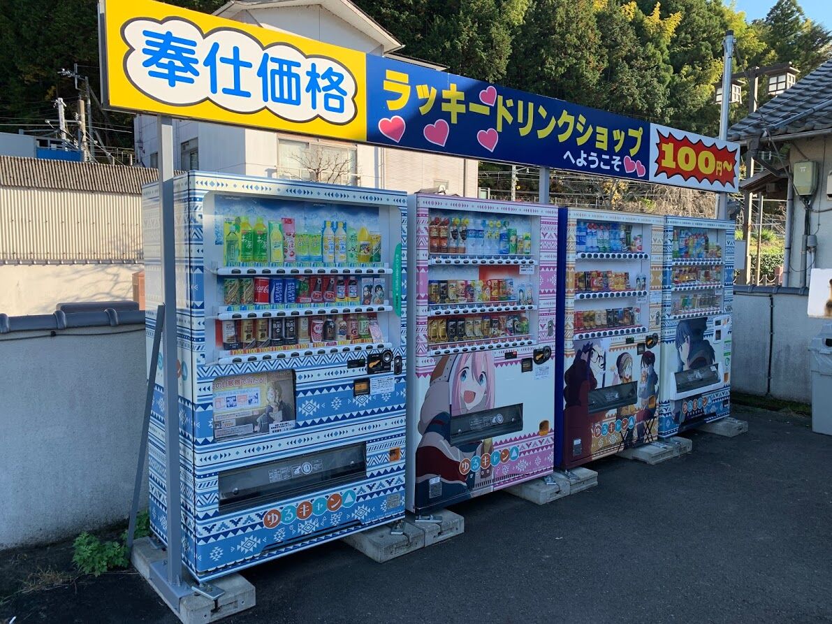 また、サイクリストにはおなじみ「ラッキードリンクションプ(ハッピードリンクショップ)」の自販機が特別仕様!!かわいすぎました✨