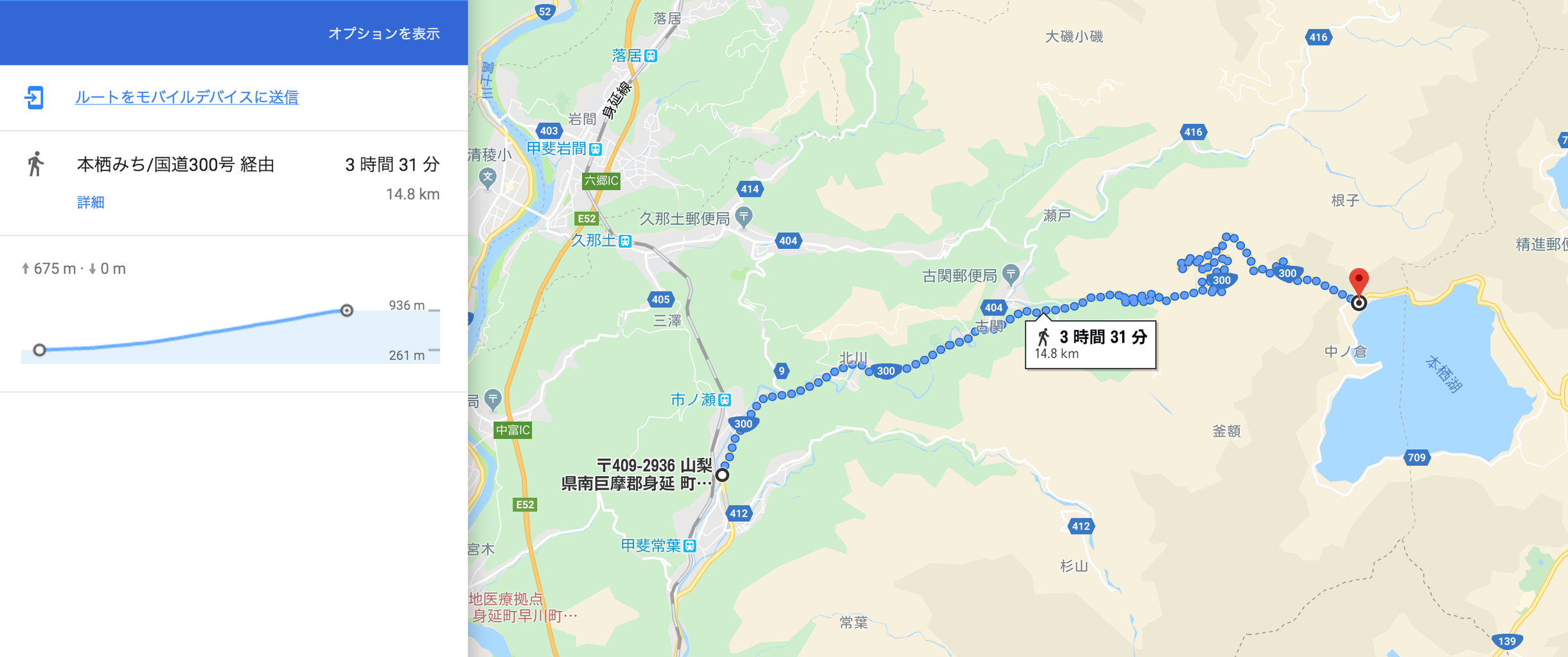(本栖高校から浩庵キャンプ場を想定ルート)