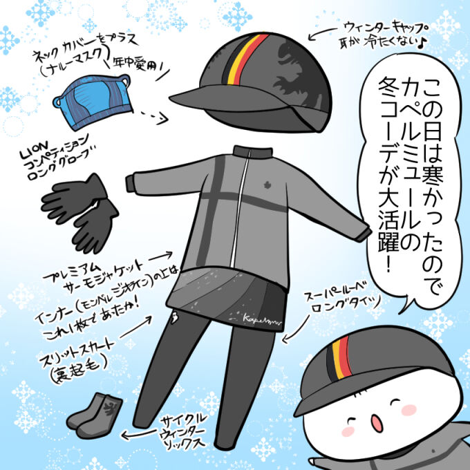 この日はとても寒かったので、きっかの「冬のカペルミュールフル装備」が大活躍でした。