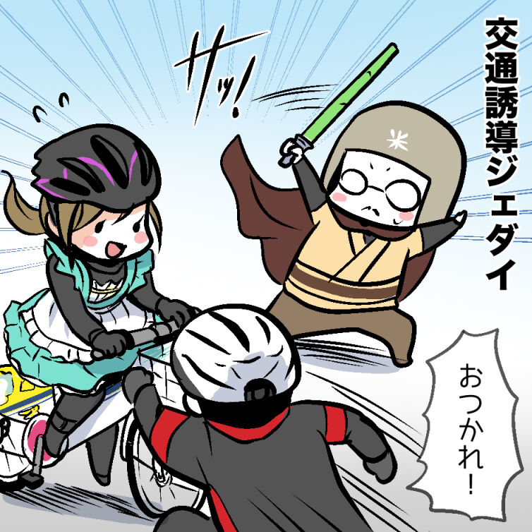 ピット交代係ではライトセーバーが途中から交通誘導の警備員さんみたいになっていました。