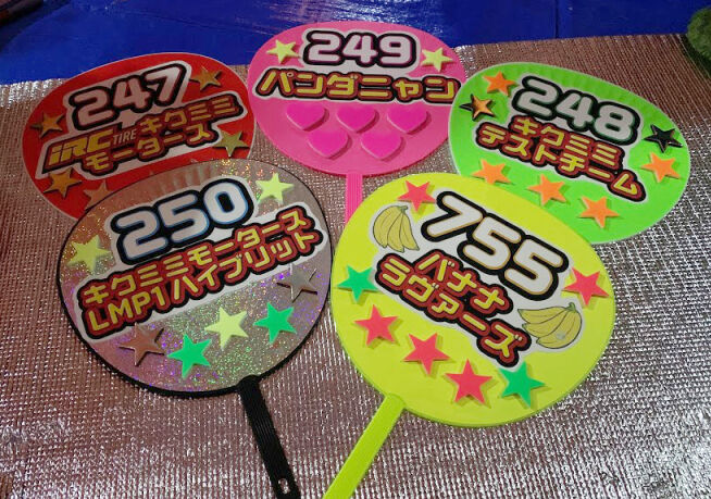 何か我らもできることを考えた結果、応援用&ピットの目印のうちわを作っていくことにしました。