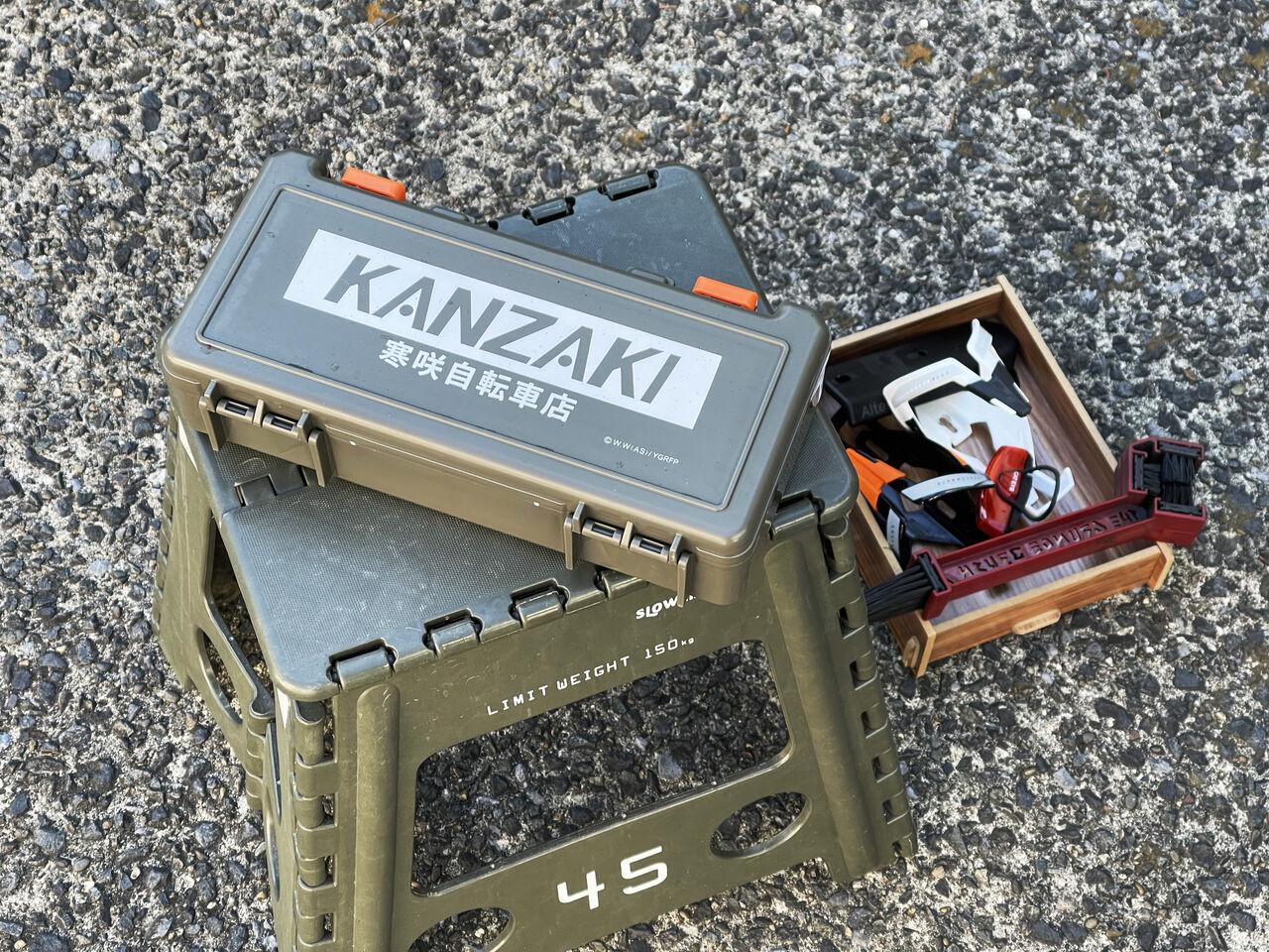 新しい機材はライドのモチベーションもそうですが、整備のモチベーションも跳ね上がるので休日を使って念入りに行いました。キャンプ用に買ったエプロンが大活躍!