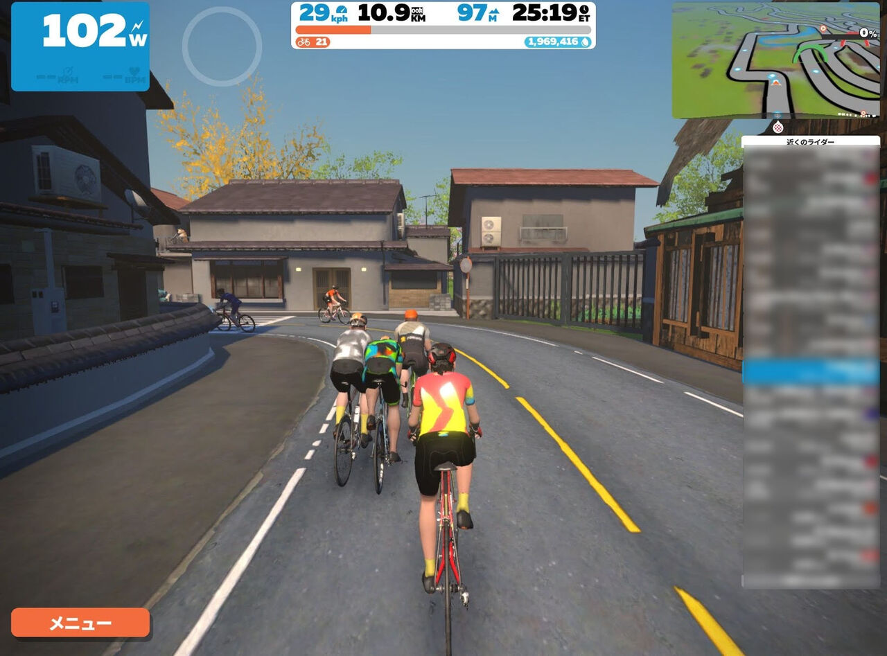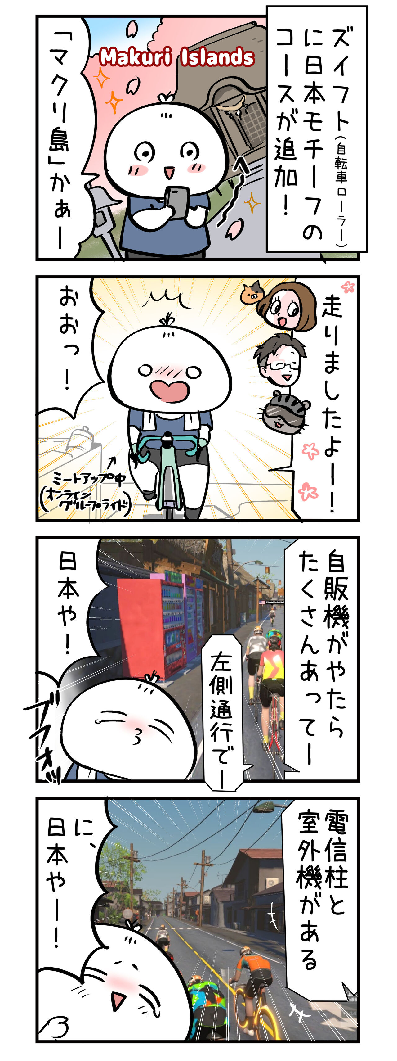 確かに日本って自販機がたくさんあって、電信柱が立っていて、家の外には室外機というのが定番の風景……Zwiftさん、わかっていらっしゃる笑