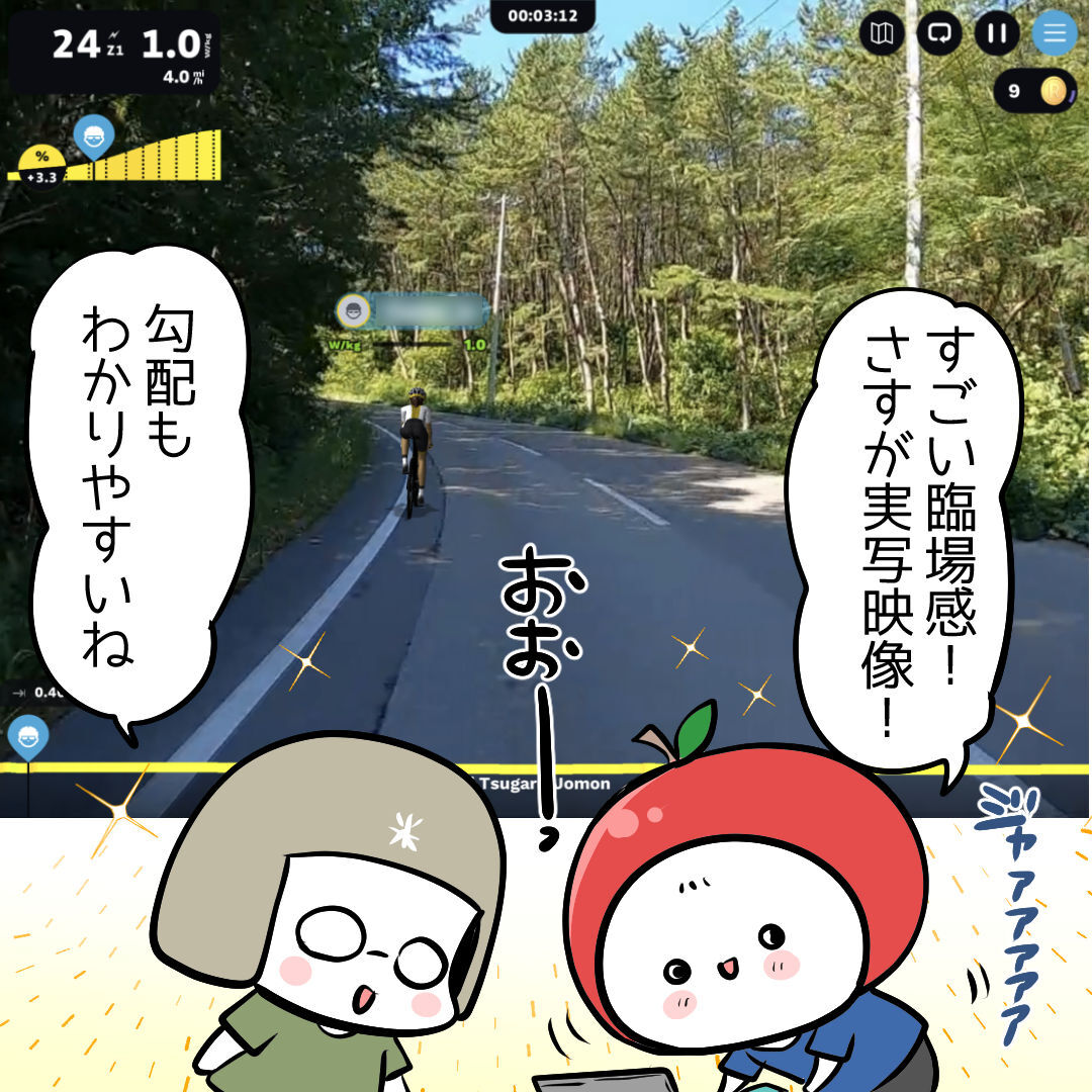 いつも使っている「ZWIFT」アプリでは背景がCGで