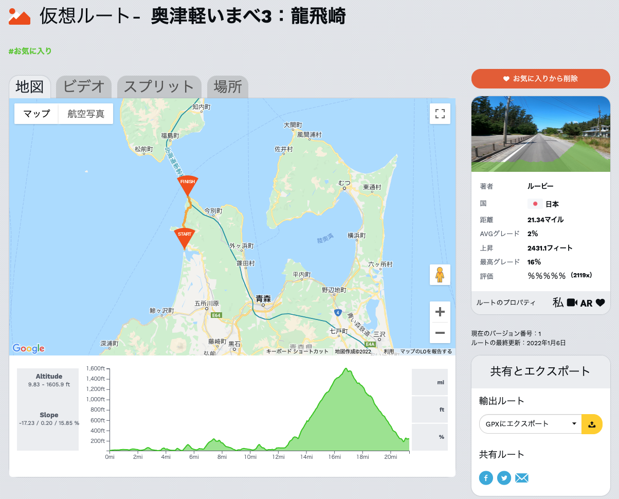 実写が凄い!!「ROUVY」で青森サイクリング!