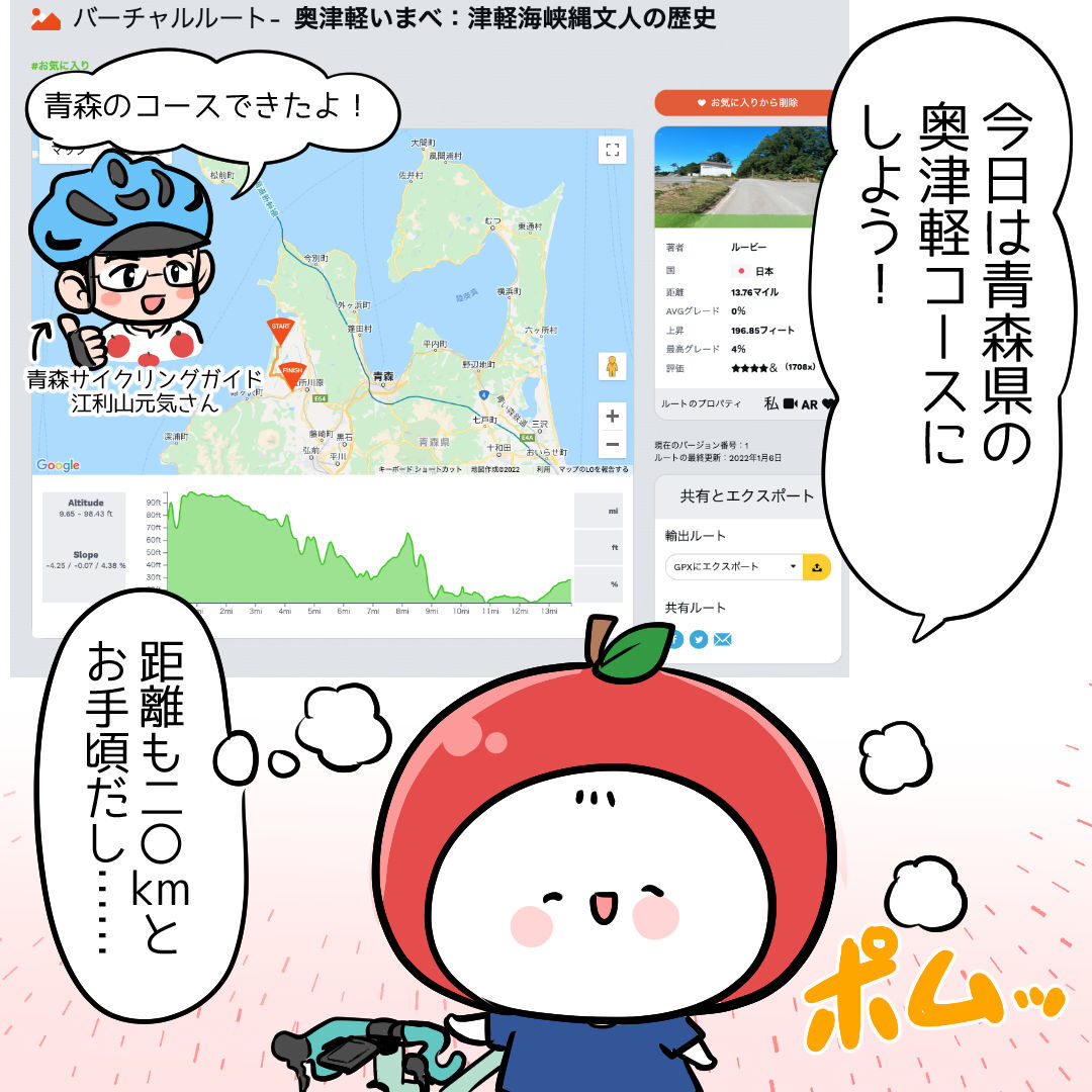 今日はスポーツアプリ「ROUVY(ルービー)」で青森県をバーチャルサイクリングしたレポートです!
