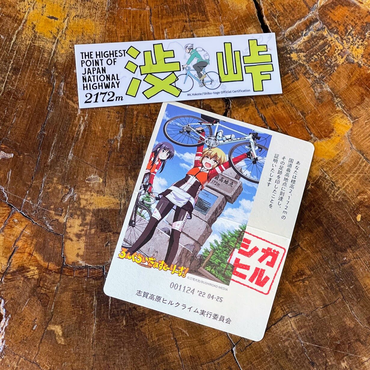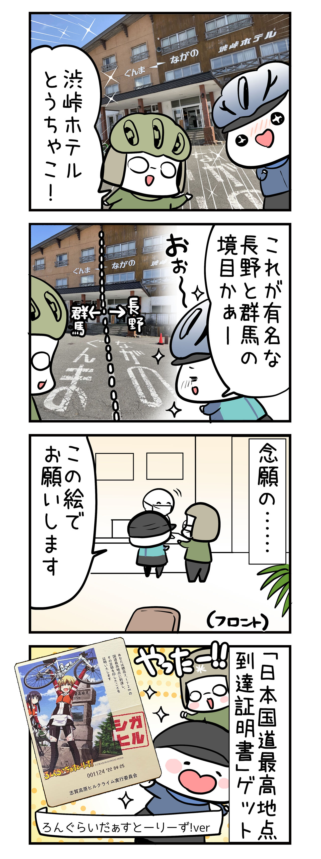 渋峠ホテルのフロントで発行していただける「日本国道最高地点到達証明書」