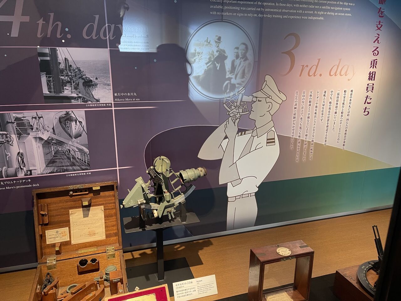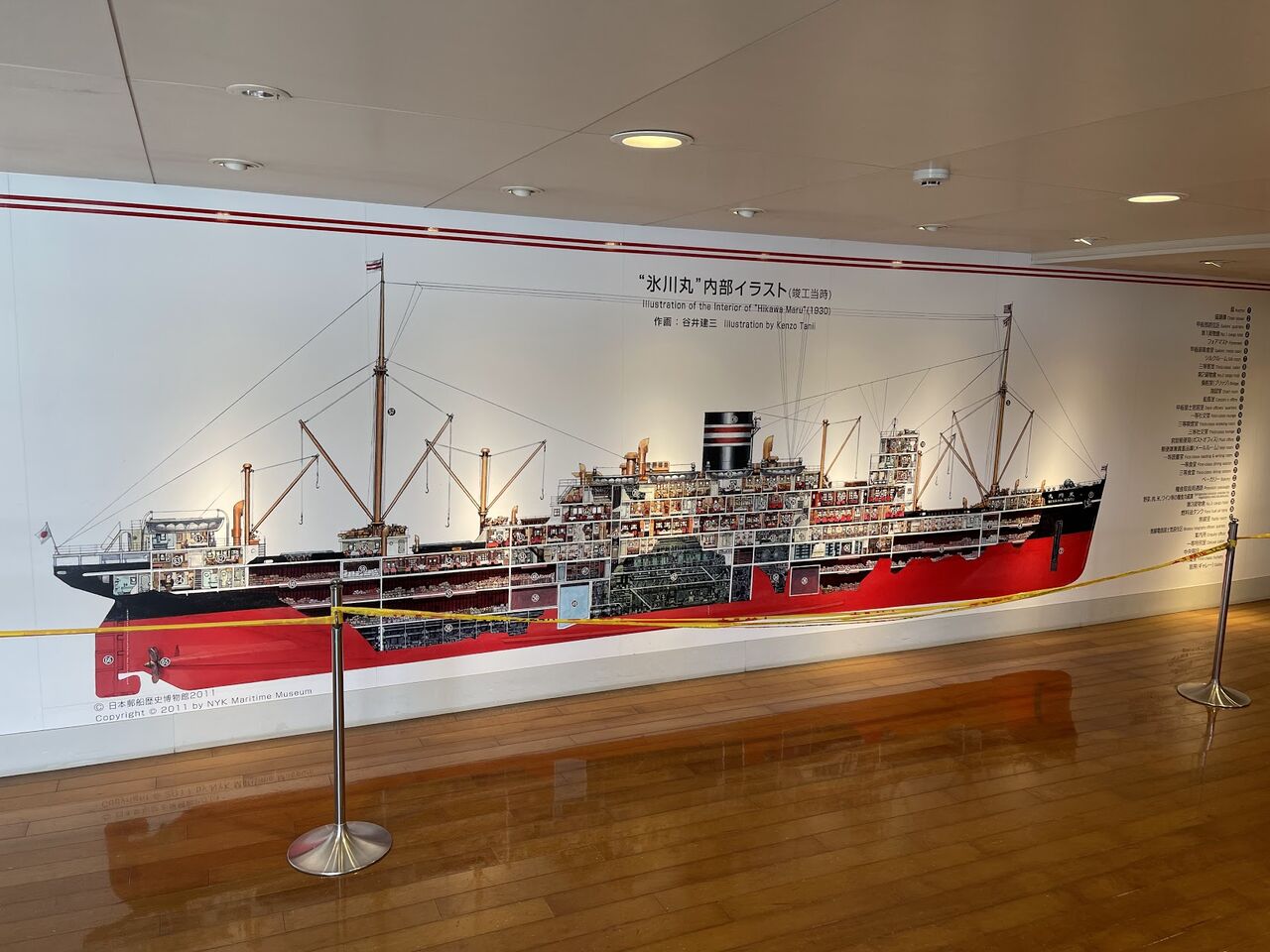 展示パネルとともに氷川丸の歴史を学ぶことができます。