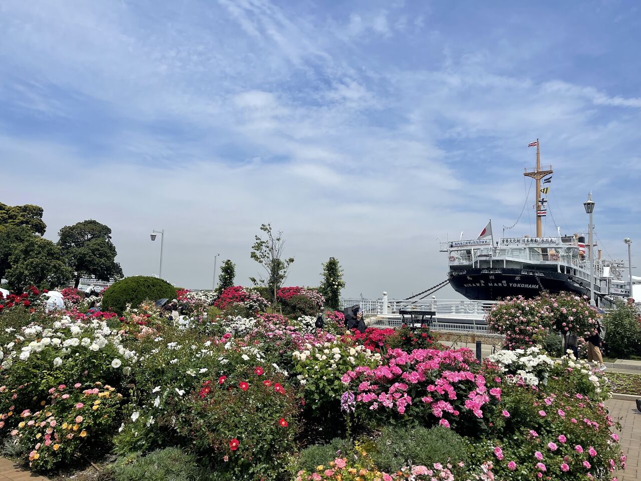 山下公園に爛漫に咲き誇る薔薇と氷川丸の風景、毎年思うけど本当に素敵✨