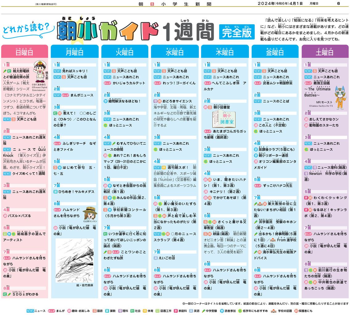 『朝日小学生新聞』1週間の連載スケジュールはこんなかんじ!!